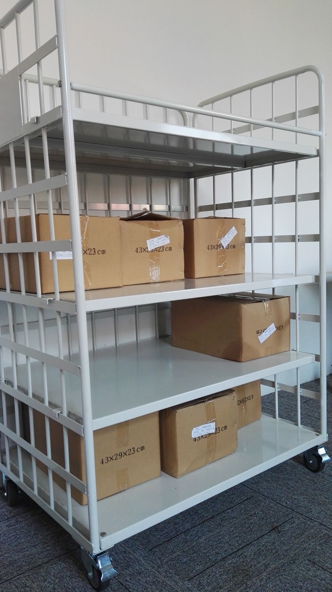 材料:采用國(guó)際圓管,鋼材牌號(hào):Q235 表面處理:采用靜電表面噴塑 輪子、承重:采用4寸聚高彈力橡膠萬(wàn)向輪/耐磨靜音耐用,靜態(tài)承重500KG 按裝后尺寸:110*80*165(CM) 重量(毛/凈):88KG/85KG 本品方便車間的日常整理、物品的擺放;有效的提升車間的整體形象.